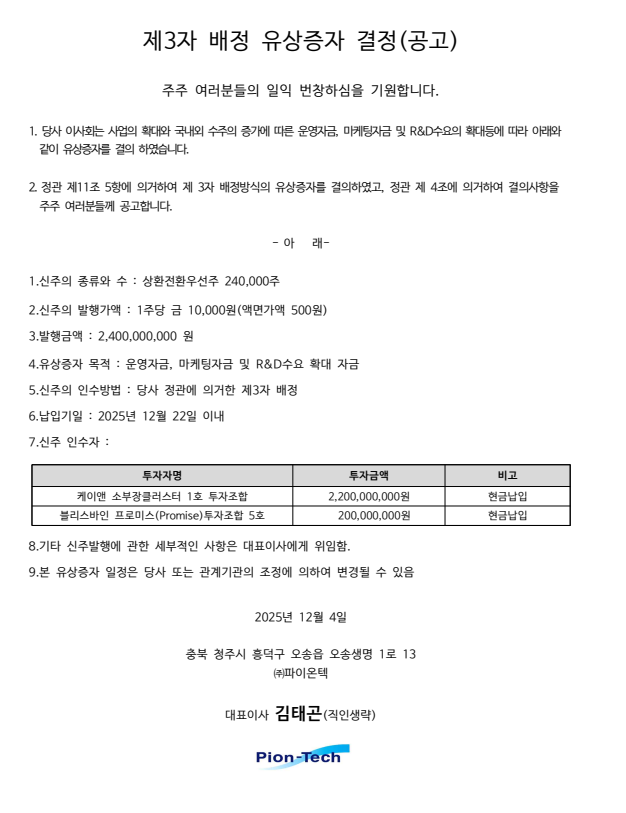 제3자 배정 유상증자 결정(공고) (2025.12.04)