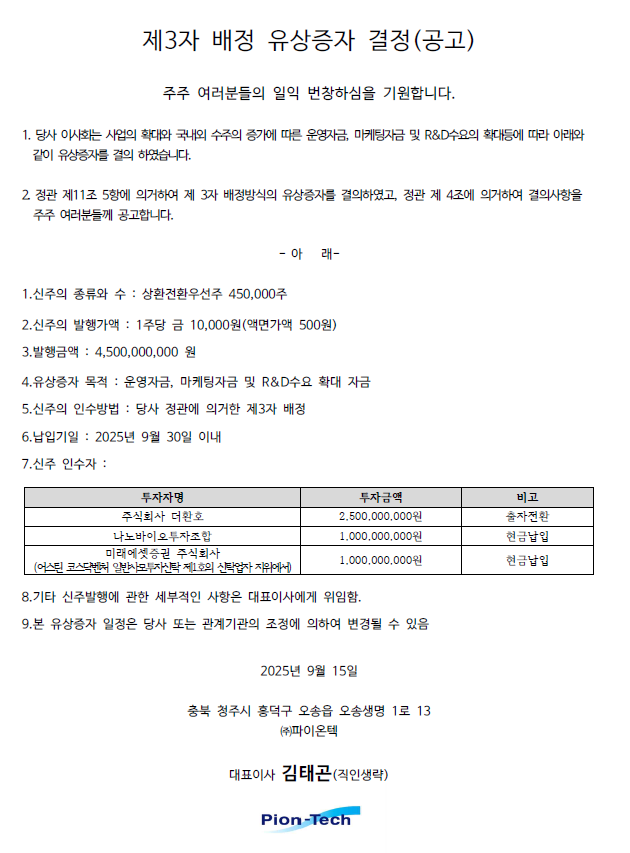 제3자 배정 유상증자 결정(공고) (2025.09.15)