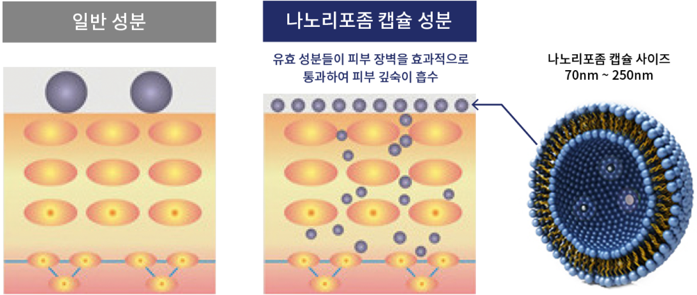 나노 리포좀 기술을 기반으로 제품의 흡수력을 높여 피부에